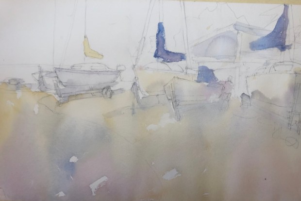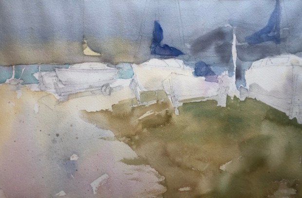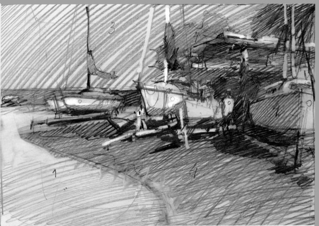 Paint along with Vladislav Yesileyev. So I thought I was done but I already find one thing to do. Shadow on the bow of one of the boats.