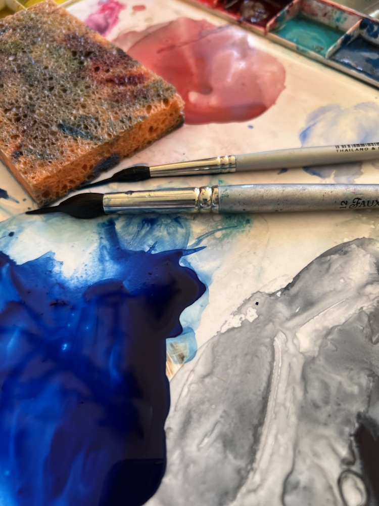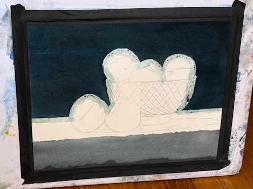 Attempt #1 140 fluid cold press paper. Not great for lots of washes. What was I thinking using a 140 for all those layers of washes?! Will probably finish it sooner or later. Someone will want it.