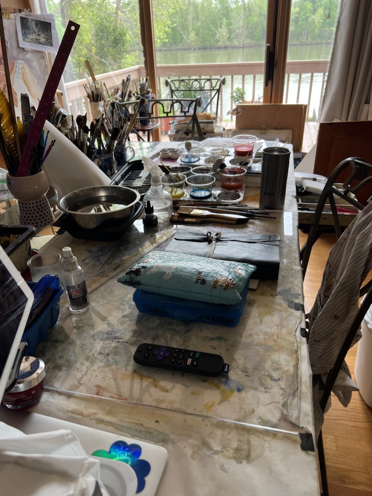 Heres where i was sitting drawing. see all my pouring cups?! Got to get back on that but company is coming.