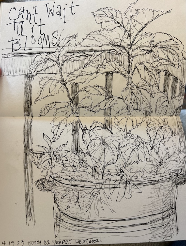 I was hoping to sketch when we got to Aiken and I schlepped the big sketchbook and the neocolor now found in my purse along with an assortment of pens and pencils. Well I am now ready for the next happening l, right?