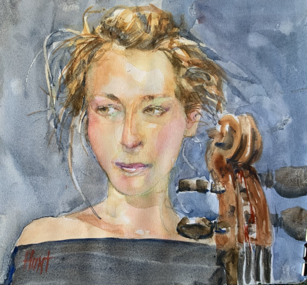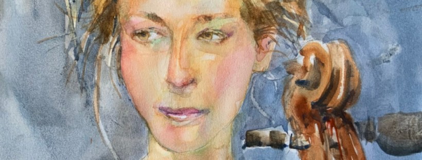 Margaret who kinda wishes she has done this on watercolor paper. Oh well. Hmm i may go back and make the background a dark chocolate brown ultramarine. It would make her pop and the cello blend in.