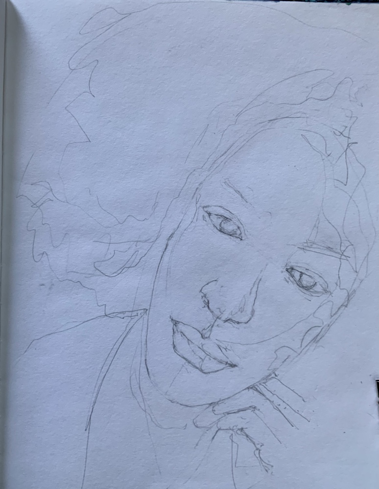 Drove me crazy trying get the eyes straight. Finally got out the ruler which i never do and drew a perpendicular line for them. kept drawing the right eye too high. 😵 And then i forgot to take any pics. Oops. Sorry.