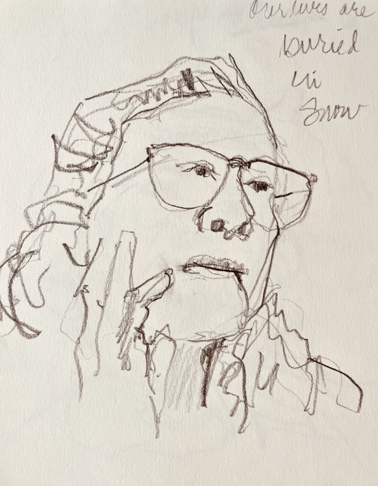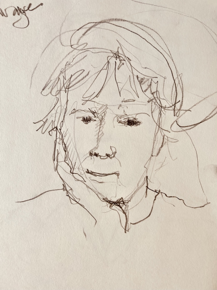That must be you in first sketch, holding your head in exhaustion, nearly