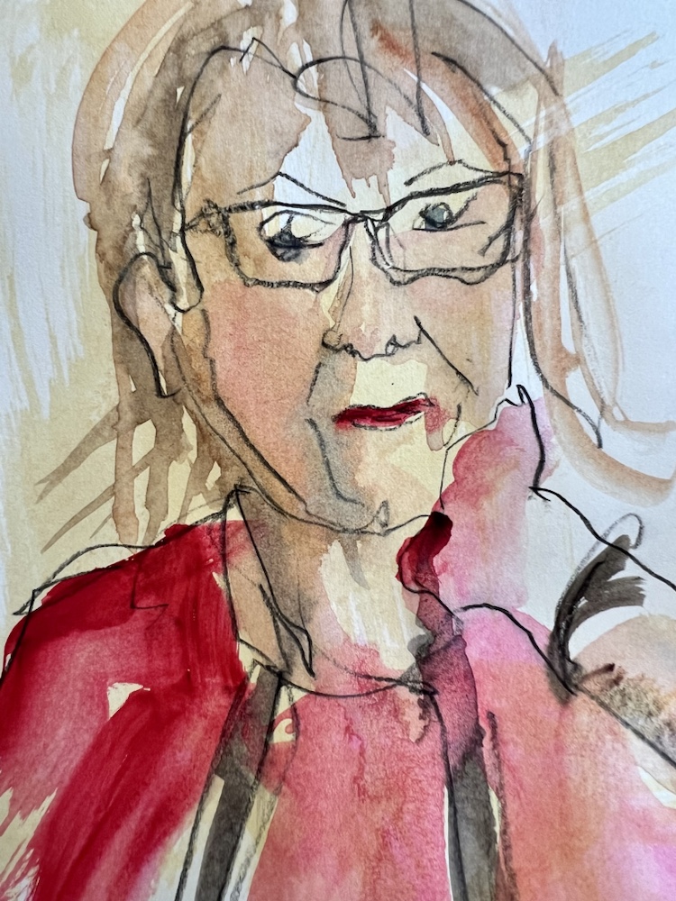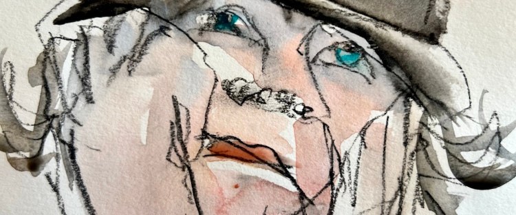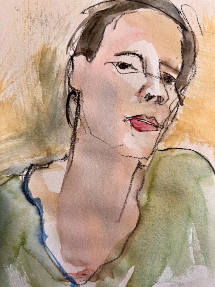 My cheap general HB charcoal pencil drawing w watercolors over it instead of pencil. 9×6β Superaquabee sketchbook