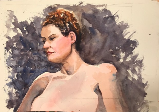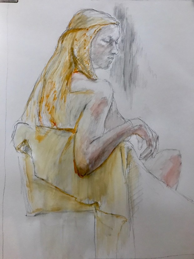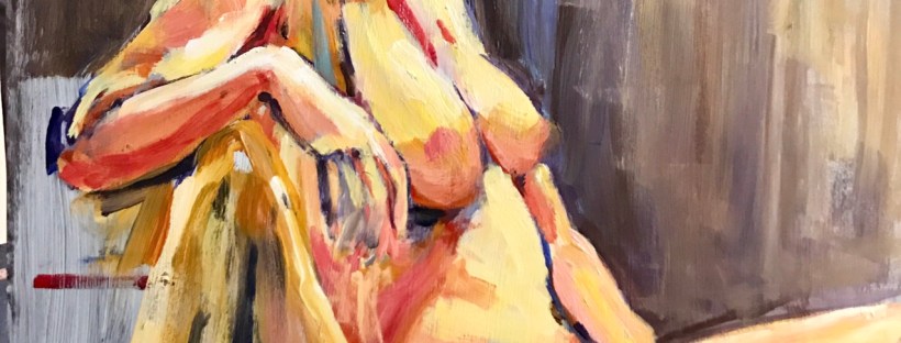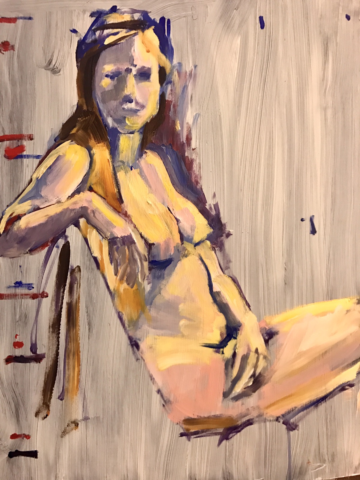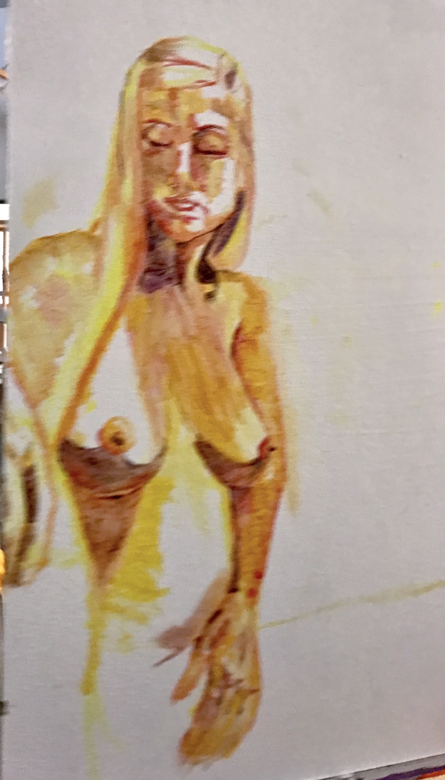 Her next painting. She’s working on a series of ballet dancers for a show with three other artists. They start with a photo session.