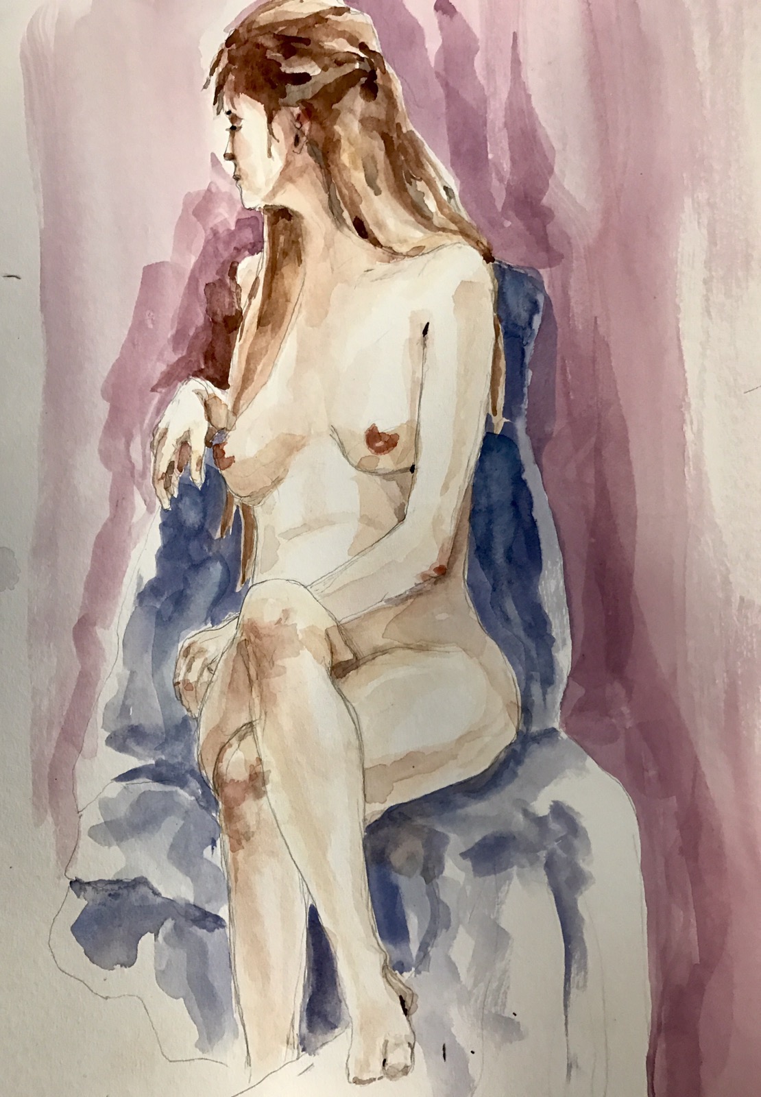 She also gets you to form a story for the painting. This is a large future color study for a full sheet watercolor of Raisin who loves Frisian horses and owns several.