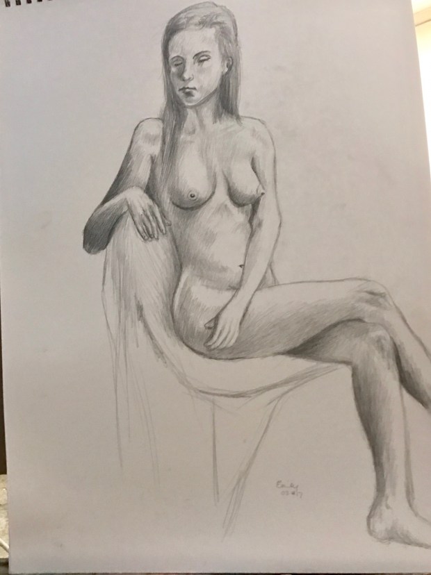 After she decides on the photo she then makes 3 small 5×7 ” black and white pencil studies.