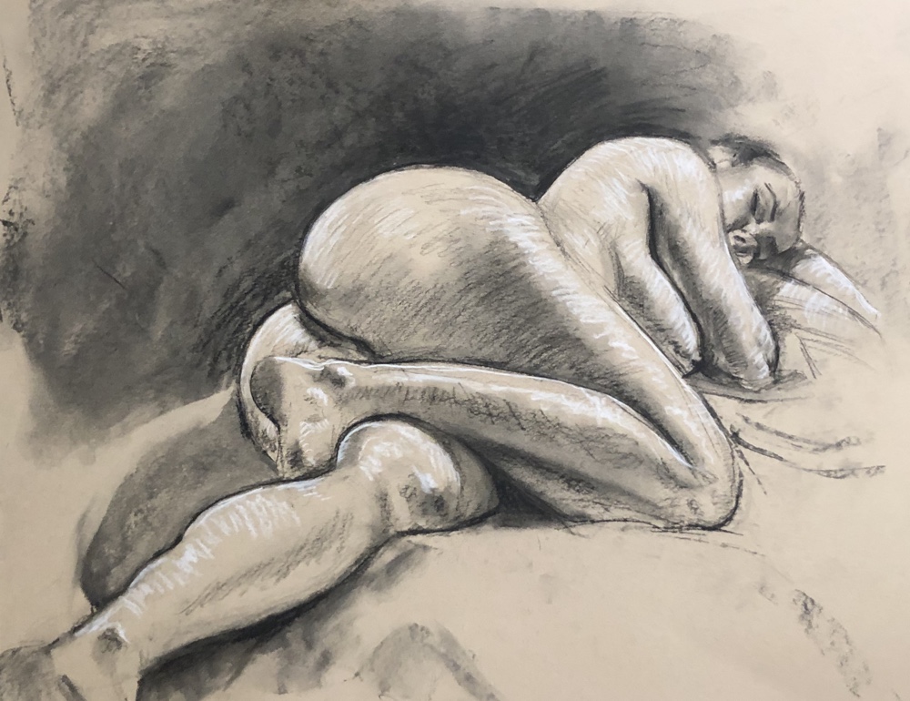 15×22 cold press Fluid. Hmm I have a whole roll of gesture drawings too. Was not thrilled doing another reclining pose. To top that off he went to sleep and his head started tipping toward me. And I mean tipped ALOT!! Not just a little.