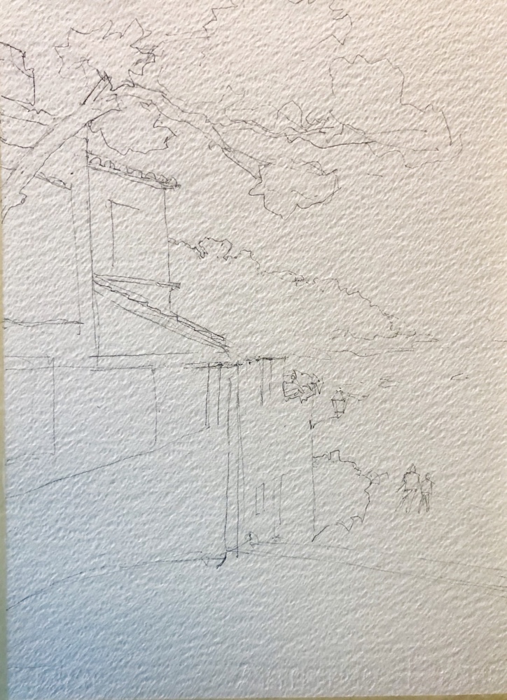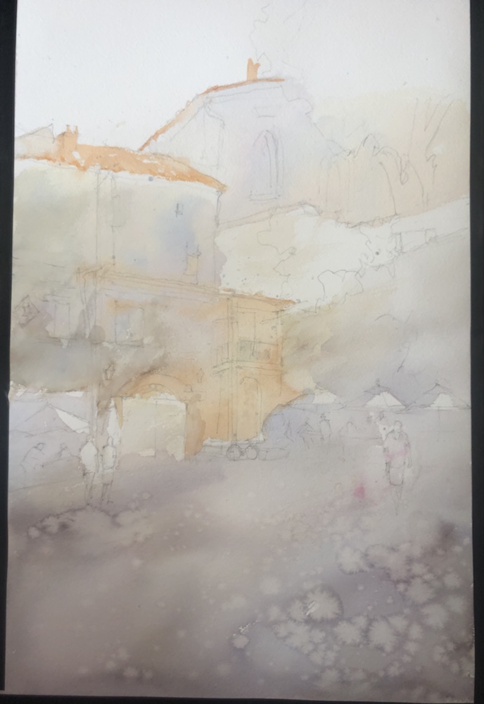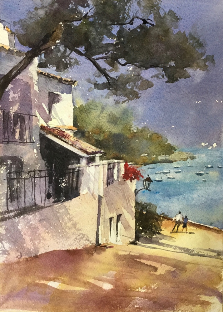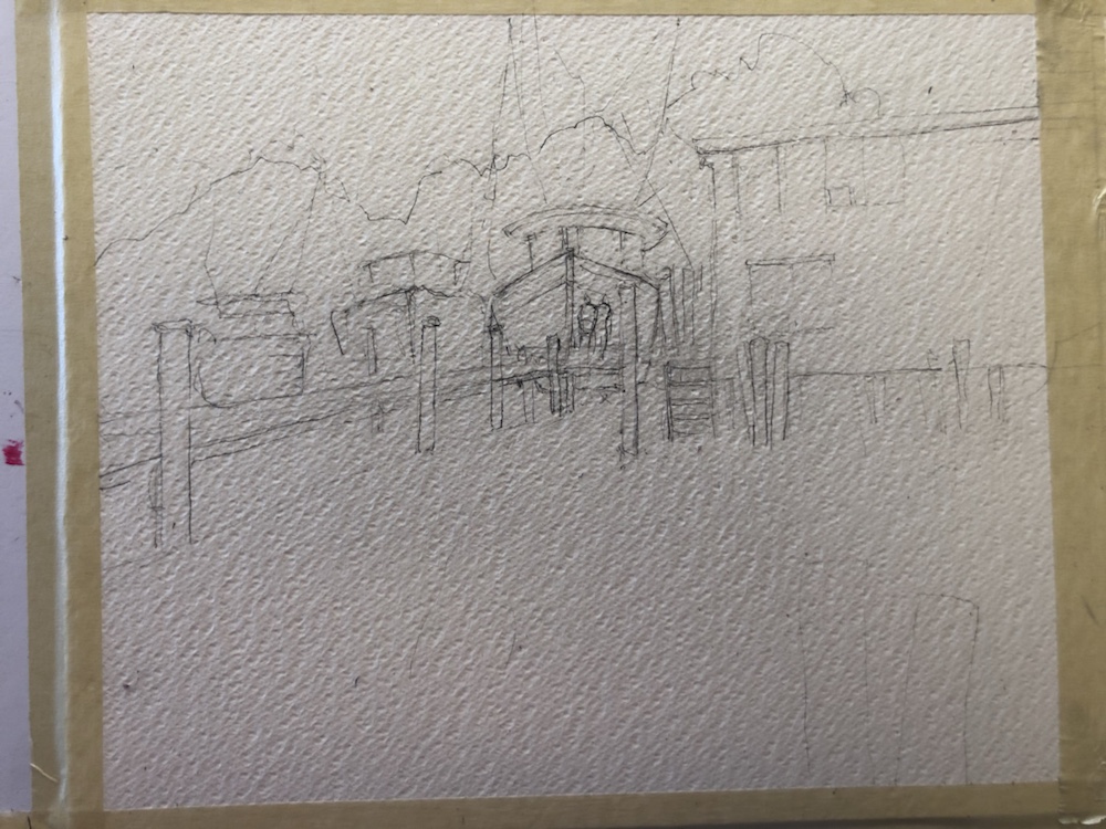 Background aka the water cerulean w a dab of burnt sienna. Multiple washes of Cheap Joes Andrews turquoise w raw sienna or yellow Ochre. I even used a very light lilac. Hmm. Lost some of the light bubbles but oh well.