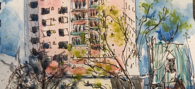 Todayβs painting. Mellow Mushroom On Broad St. – FOR SALE 10×15β watercolor