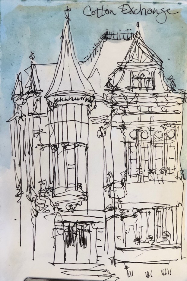 . #augusta #augustlandmarks #urbansketching #ink #usk #watercolor #aquarelle #stillmanandbirn #artonbroad #thecottonexchange #cottonexchange #dailydrawing #sketching