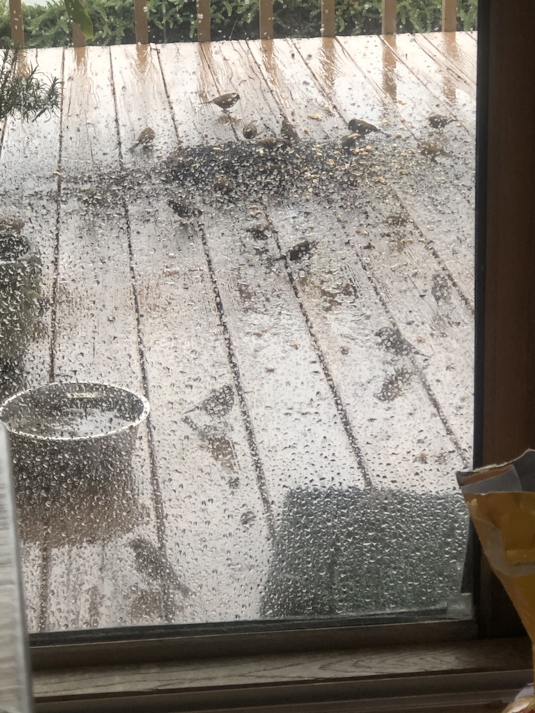 Wet day. A good day to binge steaming tv and knit. Have I NO. I decided it would be a good day to go shopping. Isn’t that when you like to shop?!🤣. I did beat the monsoon home but the humidity was 81% til the rain. We were dripping.