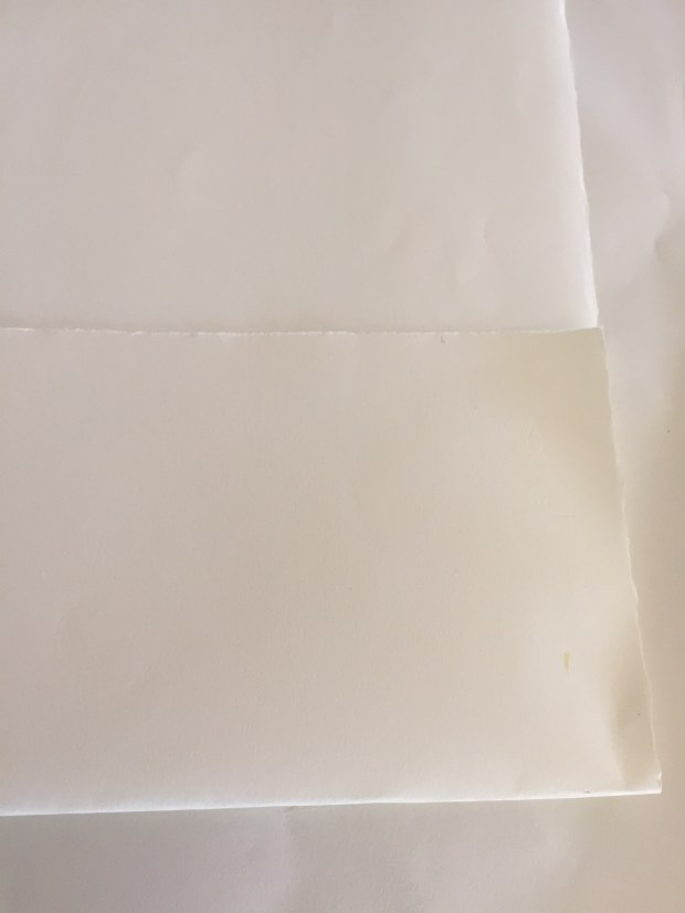 An easy way to get the torn edges is to fold your paper across the width and crease it with the bone folder. Then SLOWLY slide the bone folder along the crease ripping the paper. Roz Stendahl (Www.rozwoundup.typepad.com) has a you tube video on how to do this. http://youtu.be/pzlXHZ0f3kg Amazingly easy.