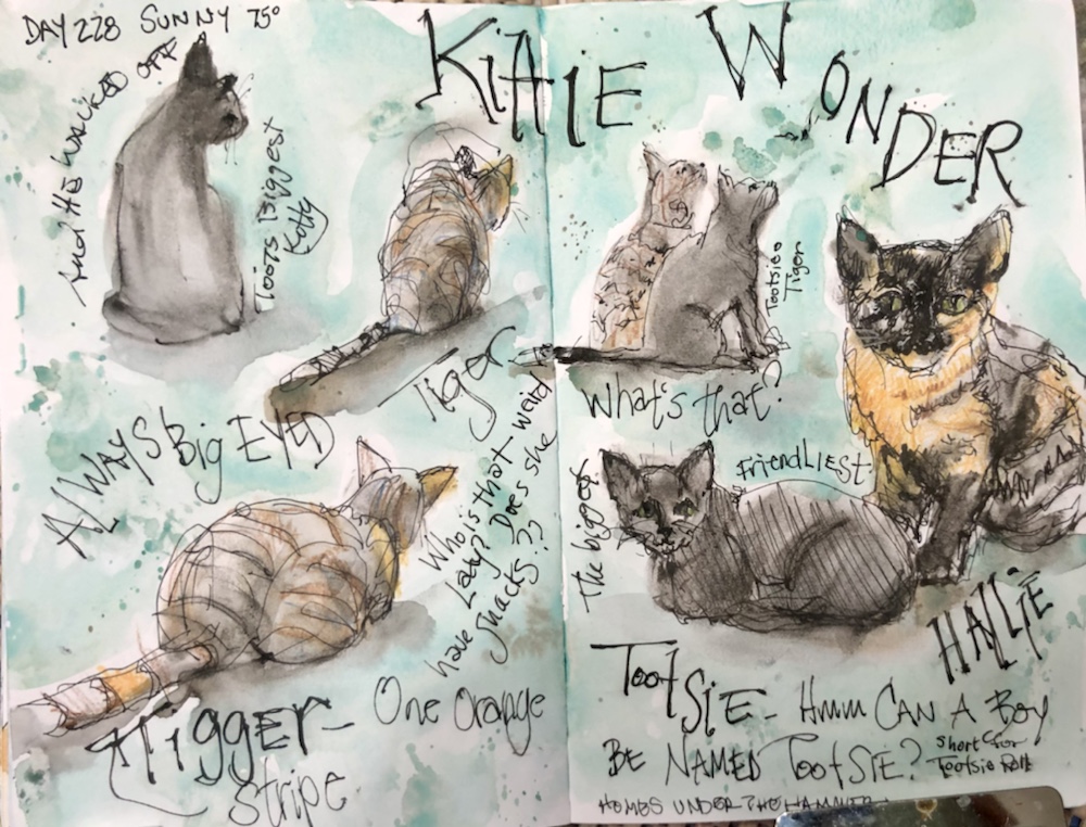 Chased around after the kitties drawing them today. There’s always something that gets their interest. Sometimes it’s me. Hmm.