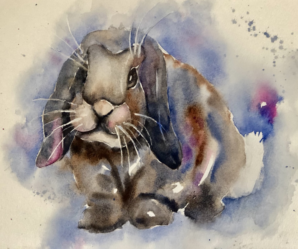 Off to a wild start with Liz Chadderton. You too can paint a cute Easter bunny. She makes her animal paintings look so easy but let me tell you they aren’t. My paper kept drying out making hard edges. Sigh.