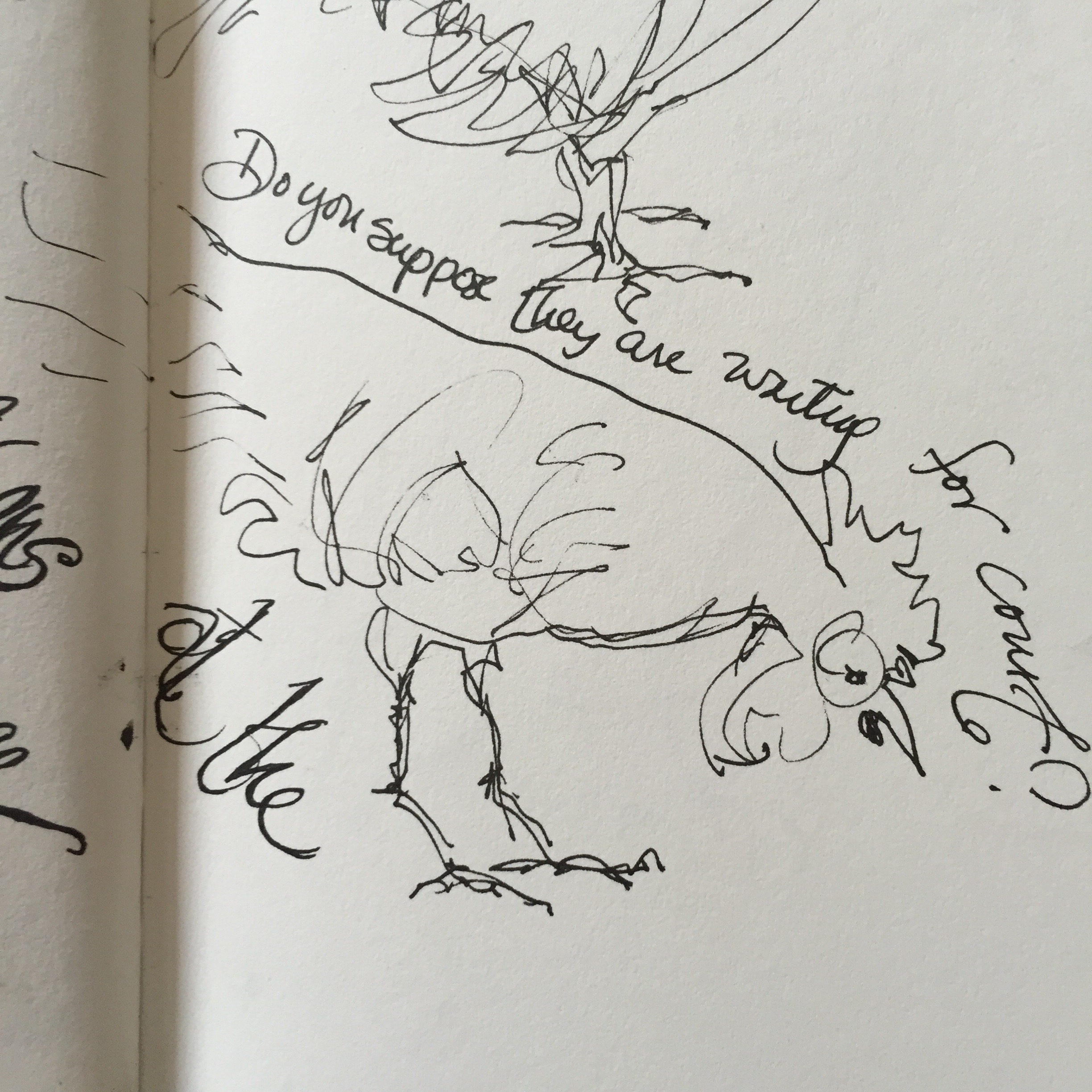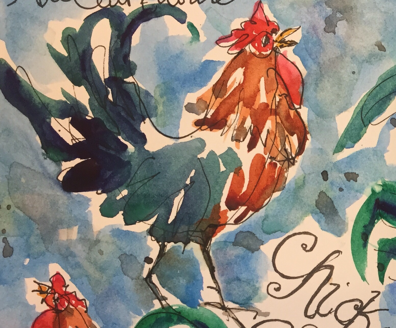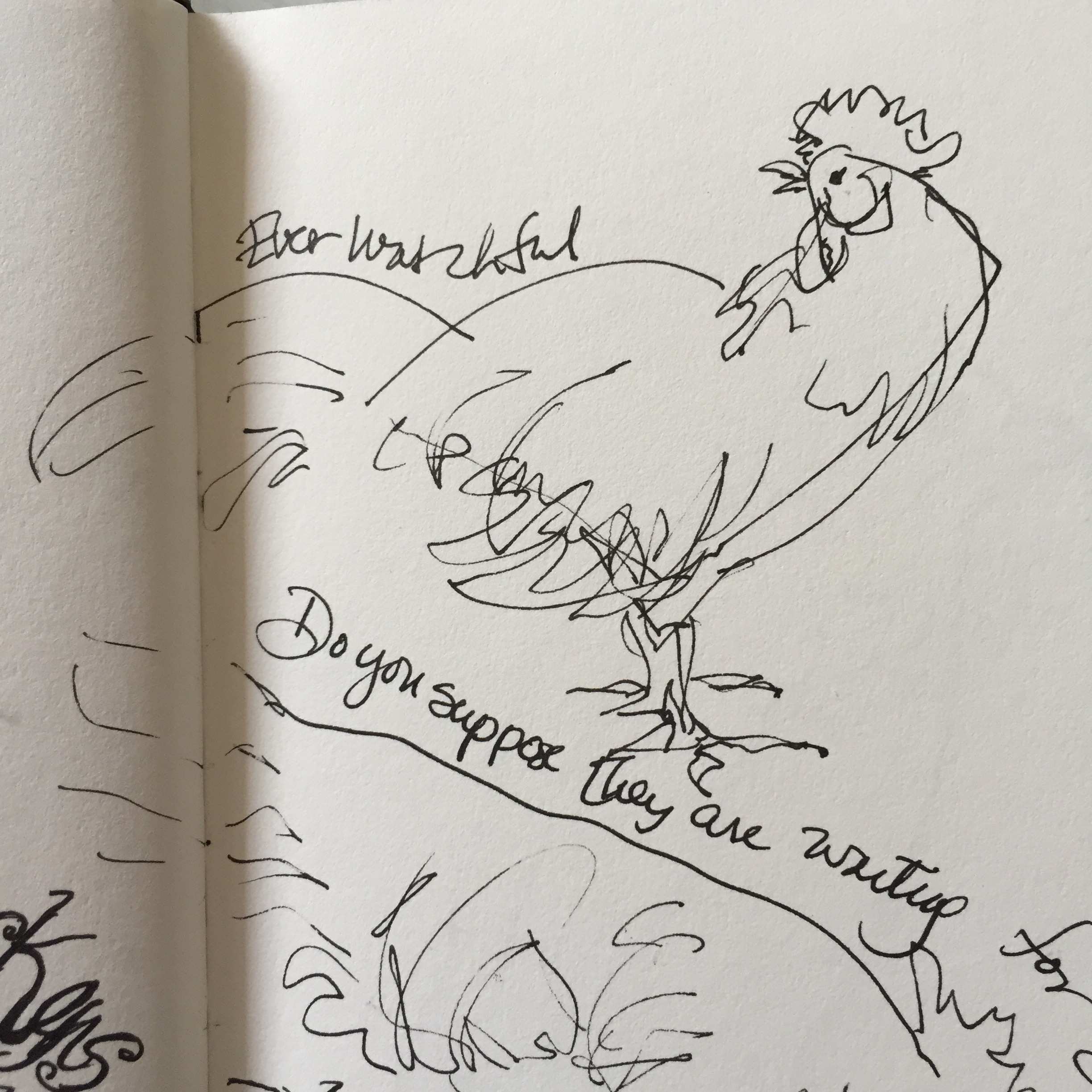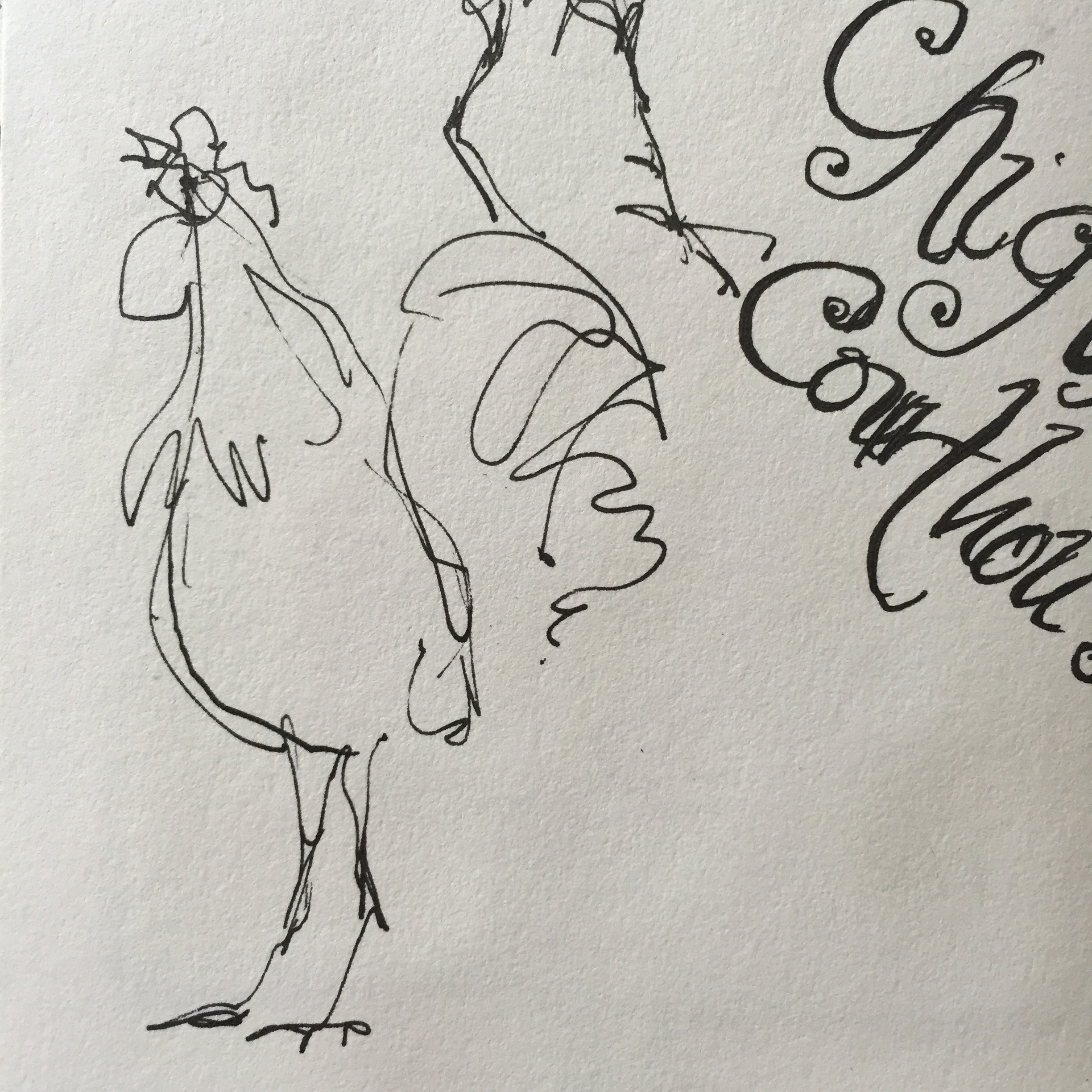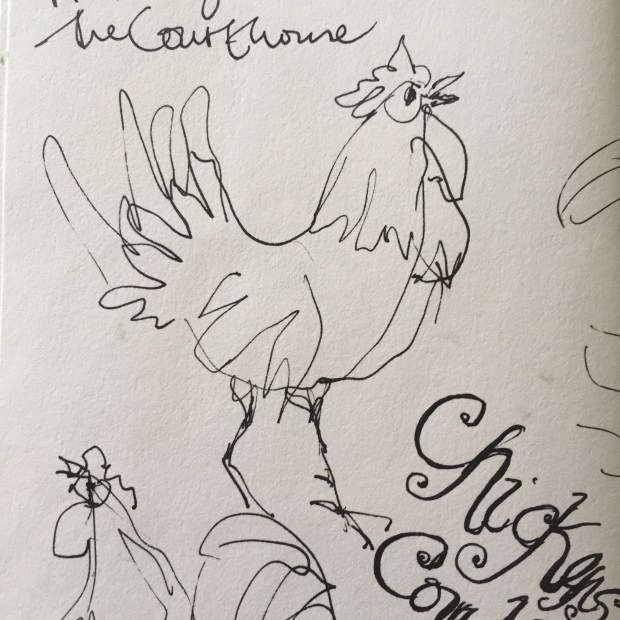 Chickens actually use the crosswalks to cross the busy streets. I saw them do it with my own two eyes. Truly they do. And I love following them around to draw them.