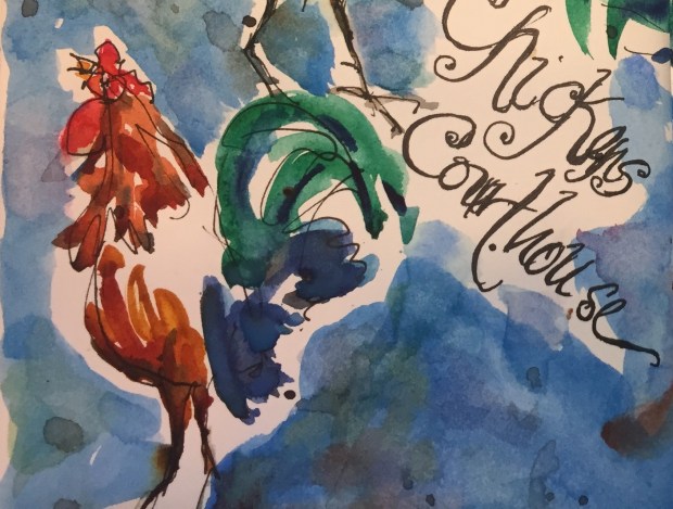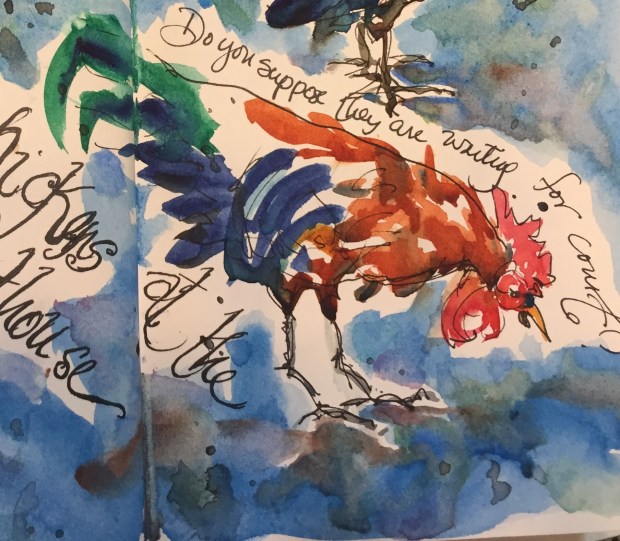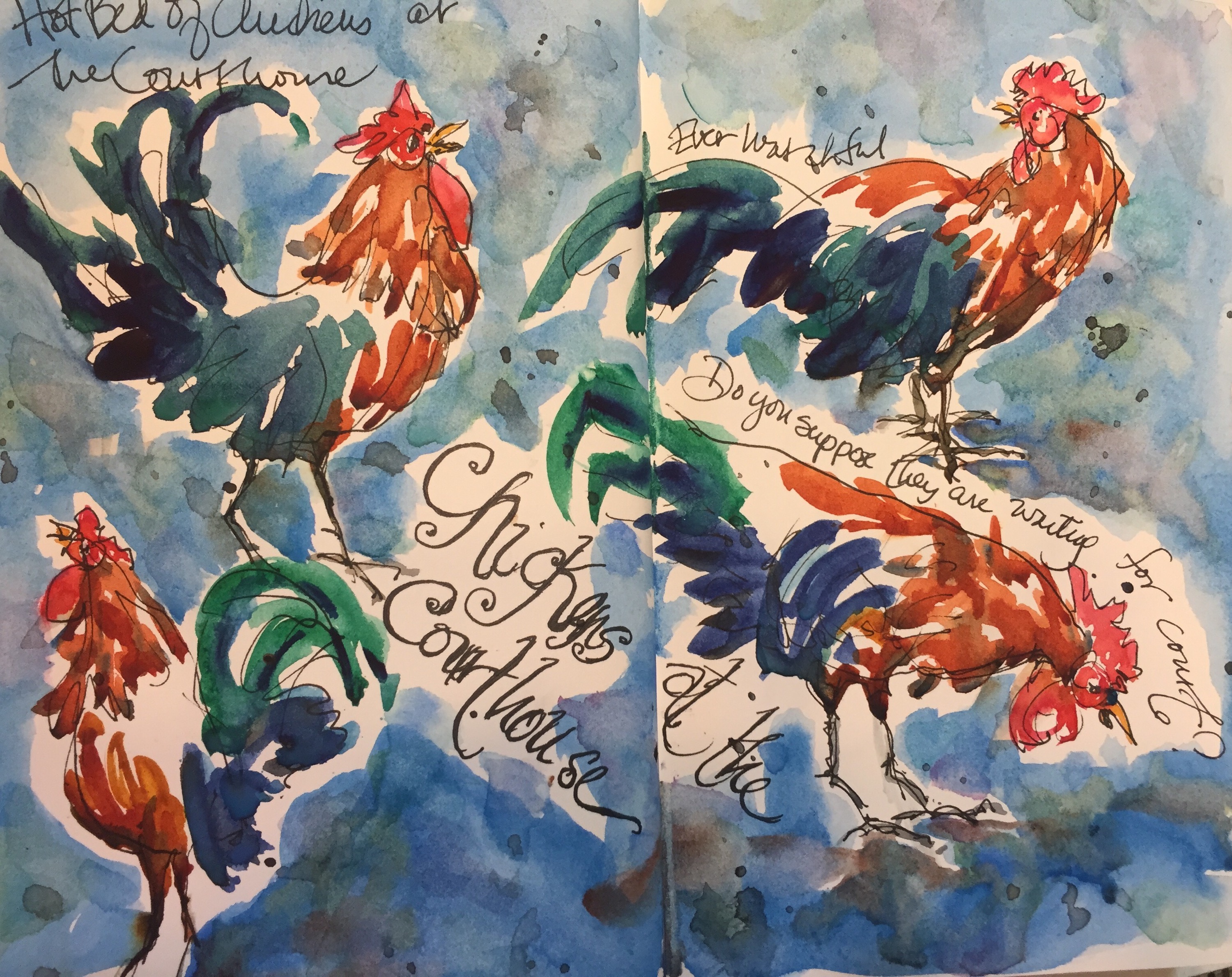 The double page in my Moleskine watercolor book. I decided they were the last double spread because they are so iconic in Key West. Literally they are everywhere behind and under almost any bush, in the parking lots, under the tables in your favorite restaurant. You can not help but fall I love with them.
