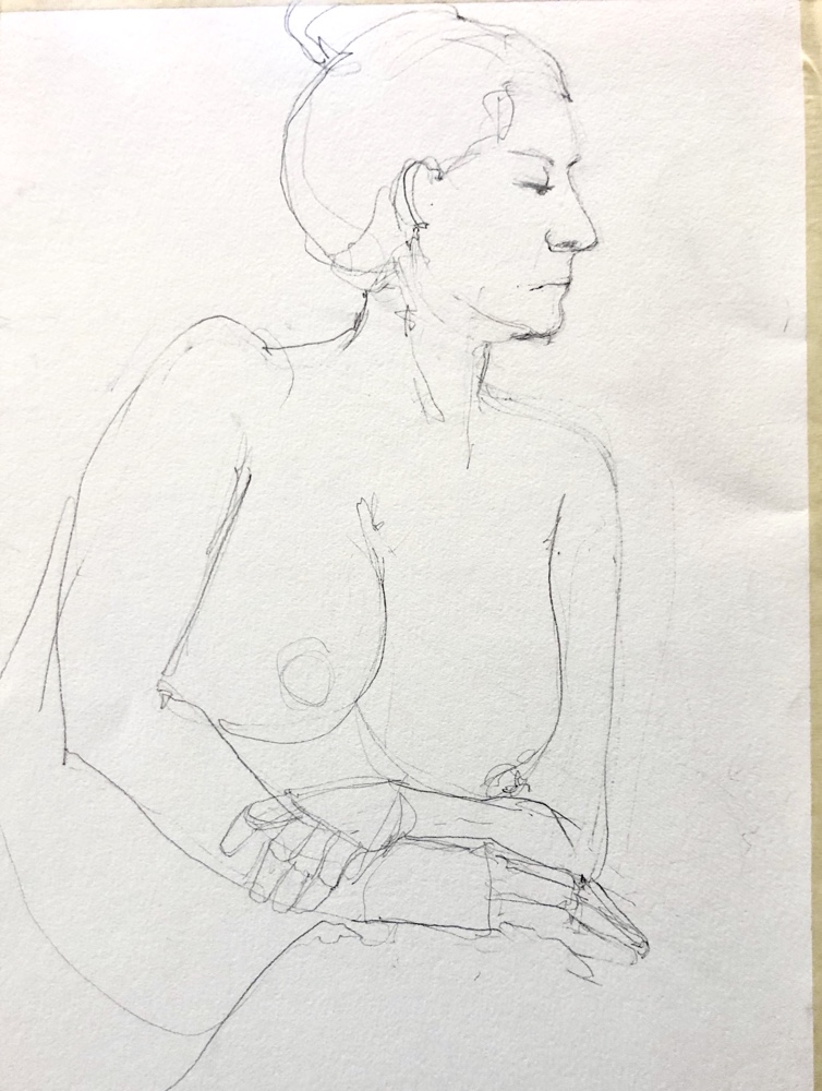 Was our model today. We did ALOT OF gesture poses first which really do help with drawing the final figure quickly. Limbers you up.