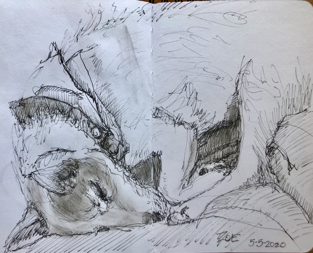 Think I will draw Zoe. It’s been a while and she’s curled up ready to be drawn.