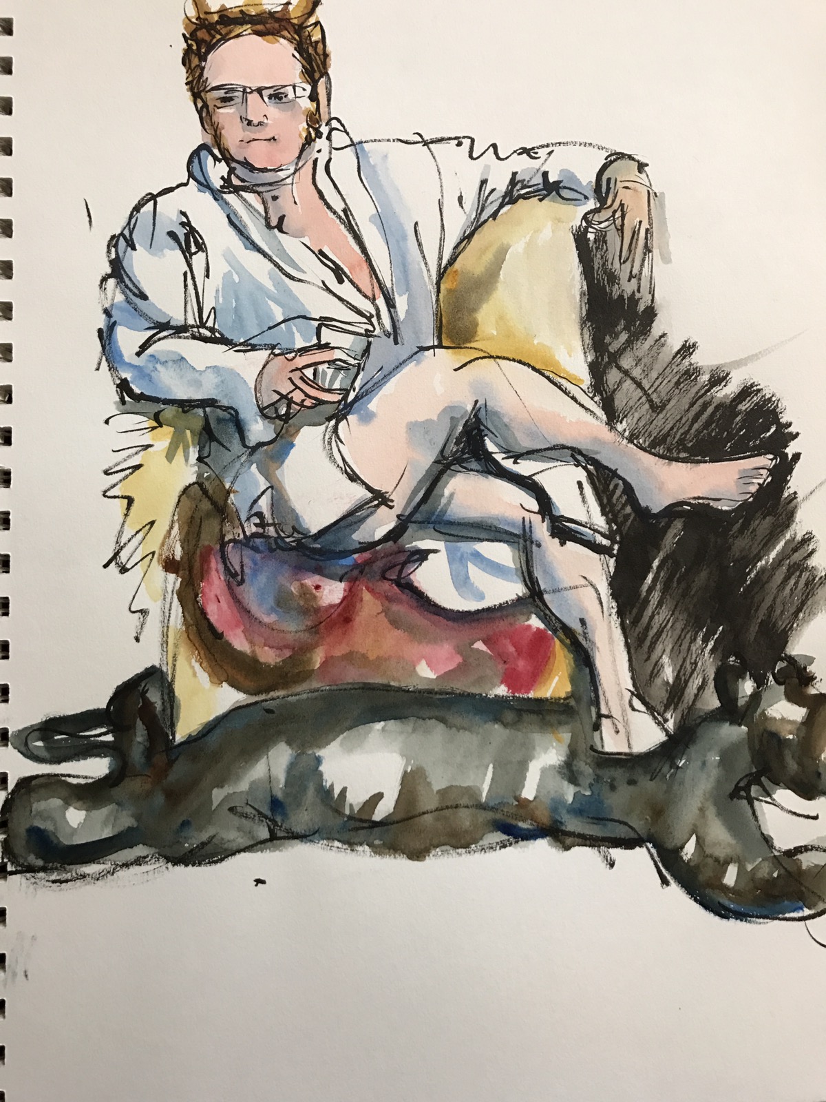 The ink sketches. Sometimes you should just leave them ink. I wasn’t using my normal skin tones of Quin coral and Quin gold. I used Quin rose and yellow ochre. So the paintings are a little dark.