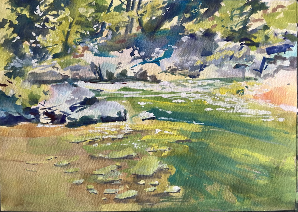 Quin rose, quin burnt sienna, ultramarine all the usual skin colors. Quin rose. Cerulean and andrews turquoise for that five o’clock shadows.