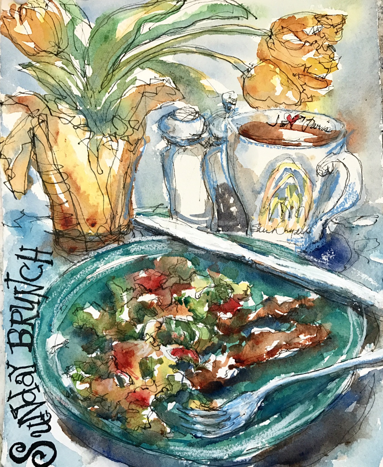 Margaret xoxoxo whose going to listen to old WW 2 movies on TCM while she paints. #usk #urbansketcher #traveljournal #watercolor #aquarelle #ink #strathmore #viking #strathmore500 #arrowmanches #normandy #normandie #normandietourisme #vikingcruises #PegasusBridge #bayeux #Ranville #beny-sur-mer #Rouen #omahabeach #junobeach #dday #alliedinvasion