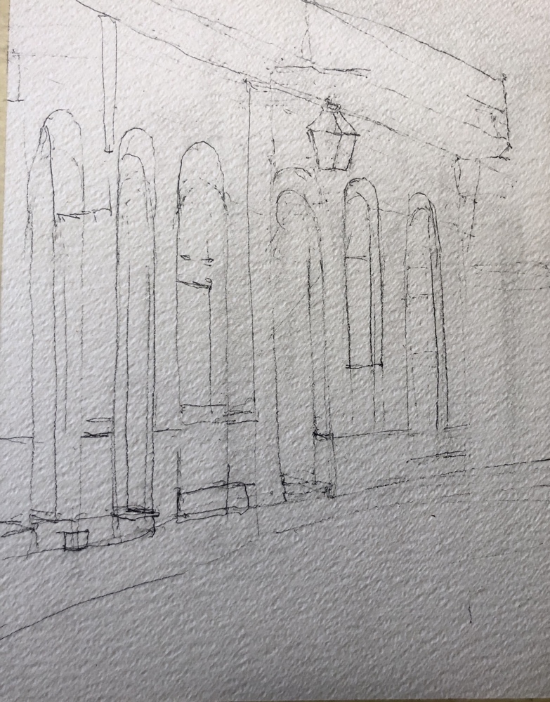 So complicated. A famous French cafe near Notre Dame and the Sorbonne. Just drawing the balconies was SHOOT me now please.