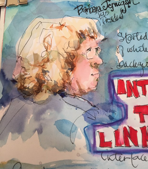 His bio says “He was attracted by the interplay between the solidity of buildings and the patterns of light and shadow they created, interspersed with people, the snap of a clean sheet drying on a clothesline, and the shape of trees and bushes.” An early urbansketcher!