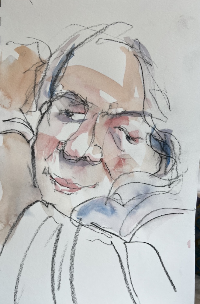 @Drawingisfree on instagram starts up again. More face drawing fun live from Paris for 1 hr at noon EST. Zoom Link in her bio on instagram. Pencils 4 tea will not meet next week. 😭😭😭 I really think these events have improved my sketching and loosened up my watercolors.