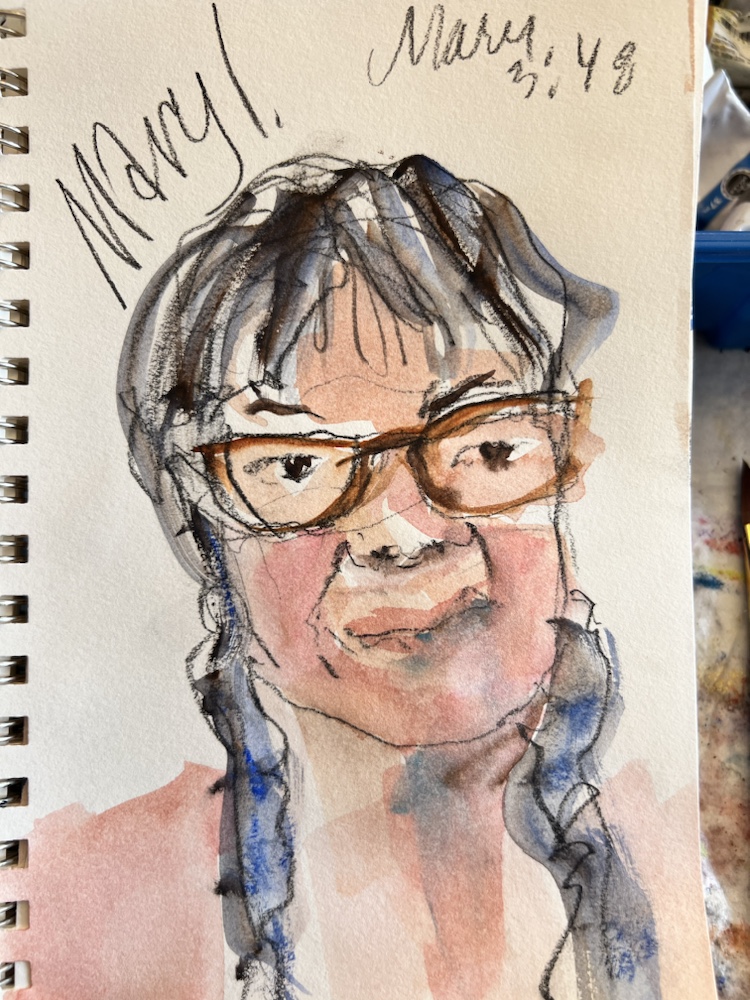 Not enough tine of course. I took a deep breath and drew her. Then painted when we were done.