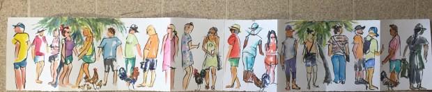 It was not the best vantage point to see people to sketch quickly. They went by TOO quickly. Mere seconds.
