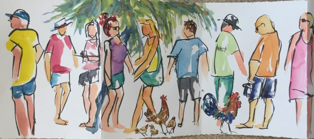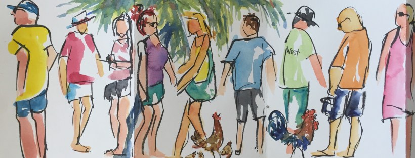 A very quick Pentel brush sketch done while we were enjoying our conch fritters with lime aioli sauce at Camilles. The fritters had just he right amount of hot. And a tall glass of ice water to keep us hydrated on our journey. Annlise is a font of info about all things Key West from the local food scene to the history and stories and even real estate pricing. You can not go wrong with her southernmost food tour.