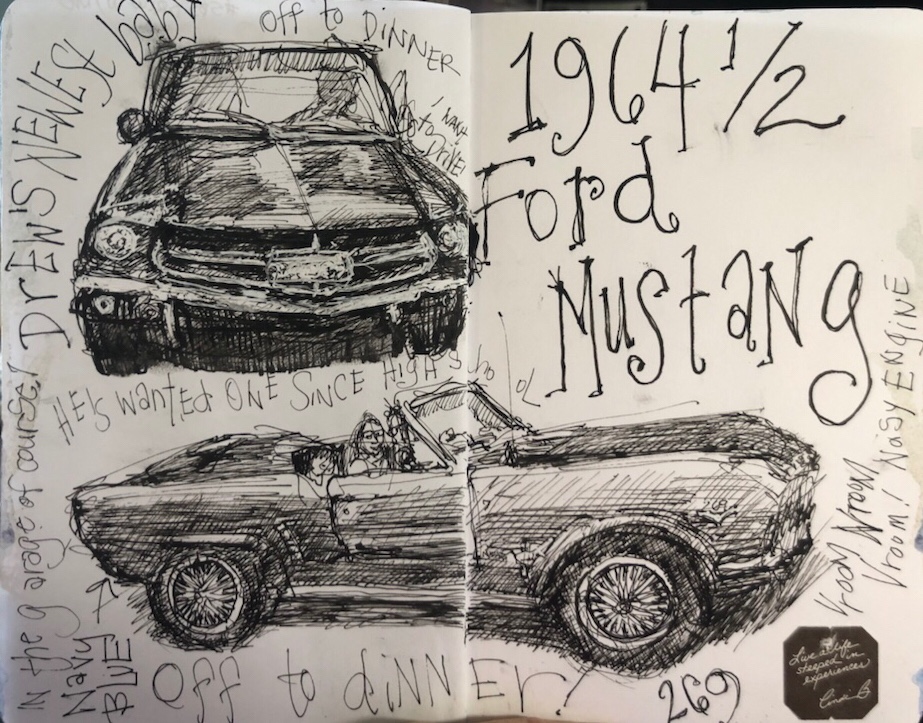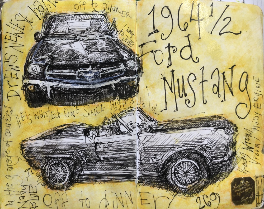 Yesterday I decided to draw it. Did I say he did not want ANY Mustang but an old vintage Mustang. He’s wanted it since at least high school. A red one.