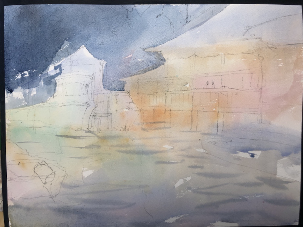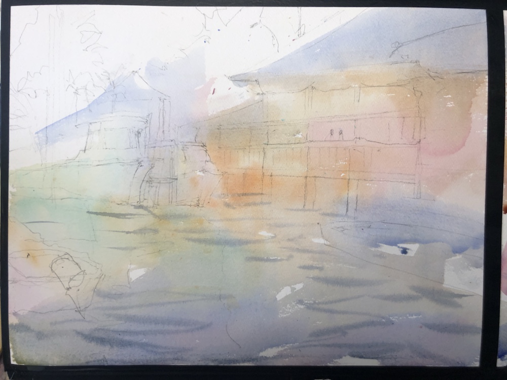 First wash. Always interesting how the little grey marks that are so pale in the water show up in the last washes.