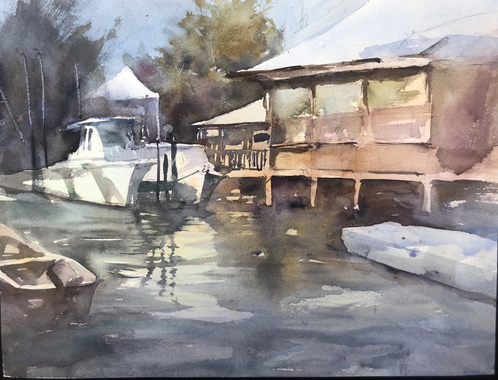 Trees done and boats starting to appear. Trees are cad yellow cobalt neutral tint and yellow ochre oh and burnt umber. All mixed to the green side.