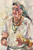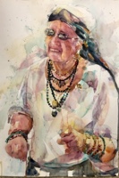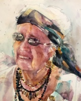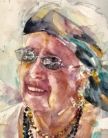 Added some white gouache on highlights like around her glasses and in her earrings.
