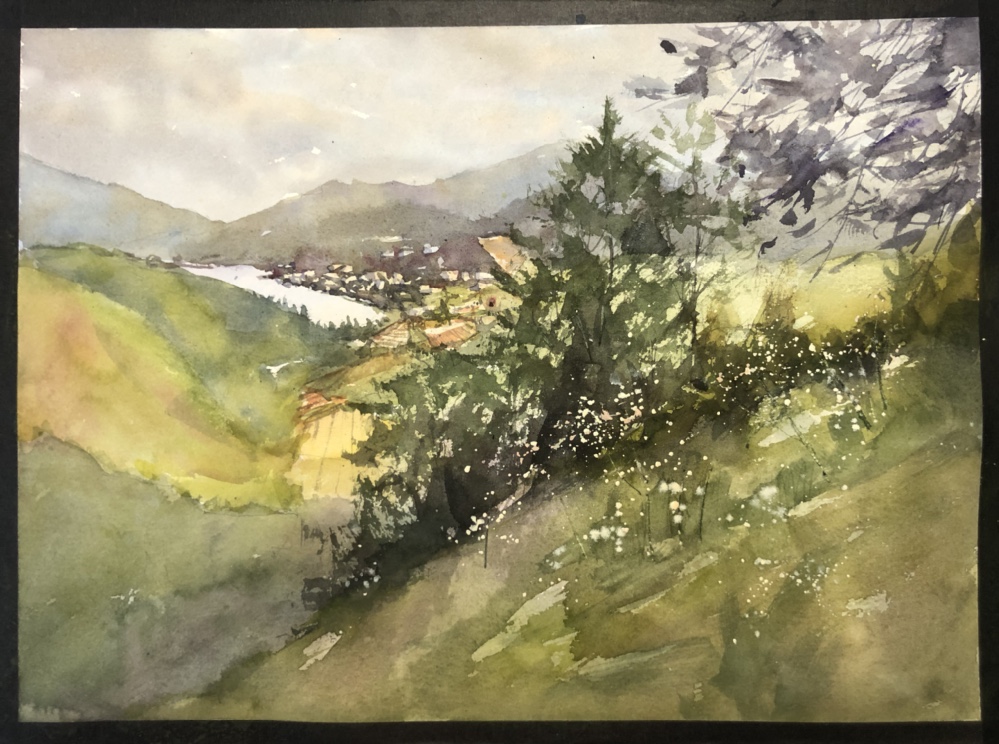 Paint along with Vladislav Yesileyev1/4 sheet Fabriano rough press. Lucas wc paint which I think gives a cloudy effect.