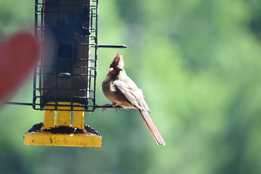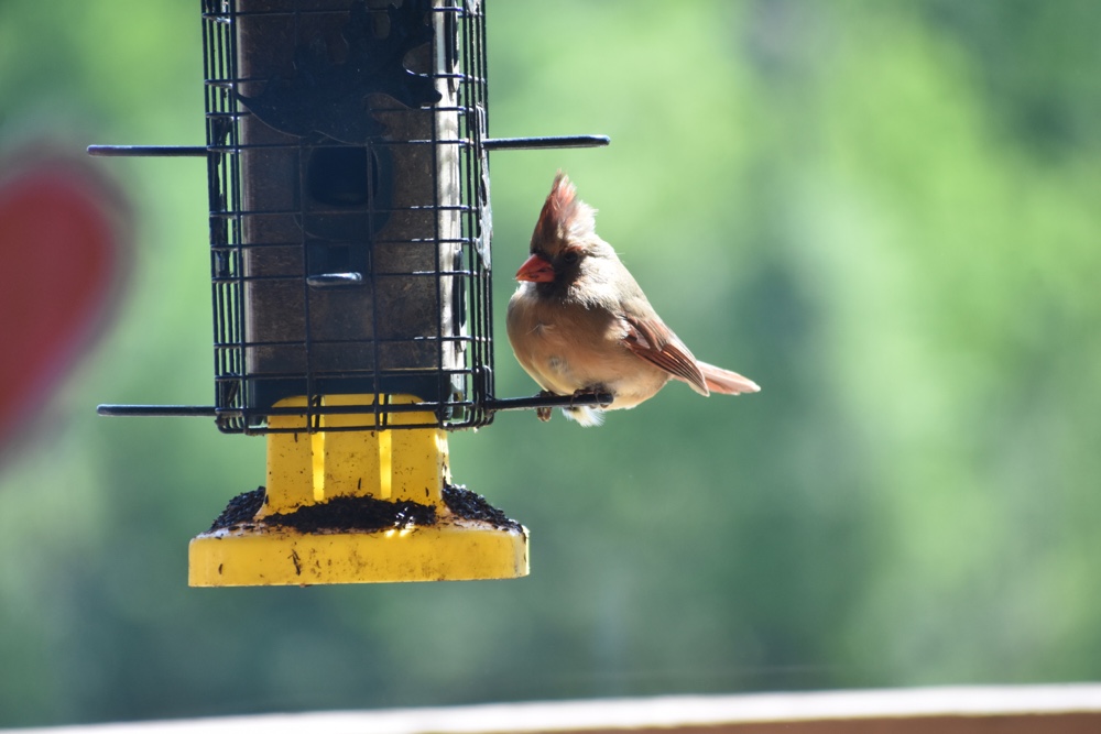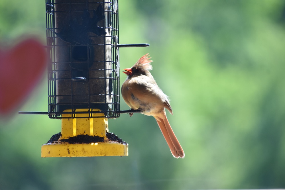 Loves this female cardinal on the thistle feeder. Adoreable.