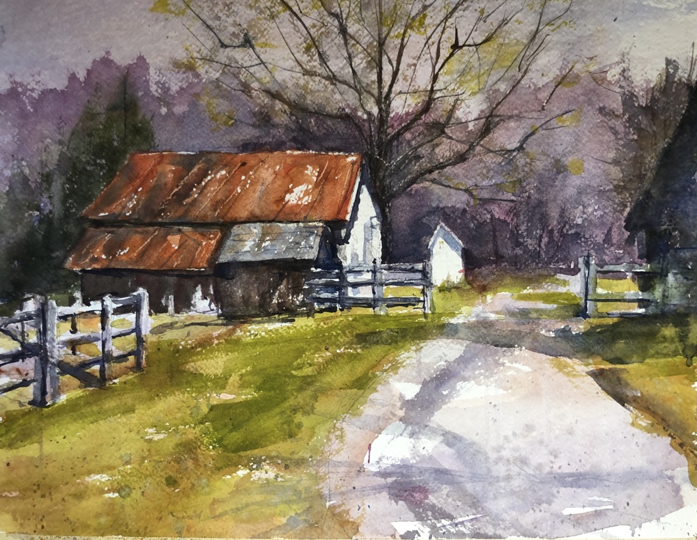 Digging around for my 140 # rough press Fabriano I found this. Always liked it. Still have the photo to finish it. Full sheet on Waterman cold press I think.