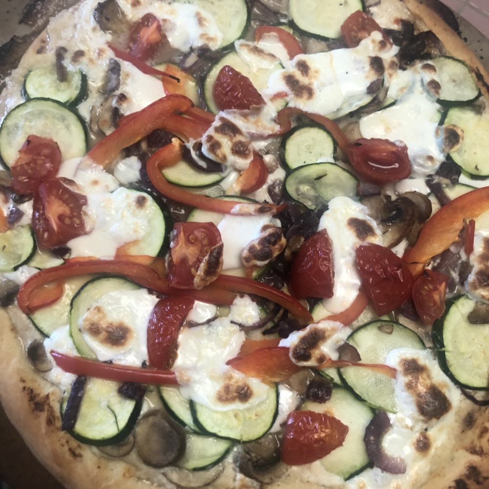 Margaret xoxoxo tucking into my Ina Garten Bianca pizza.
