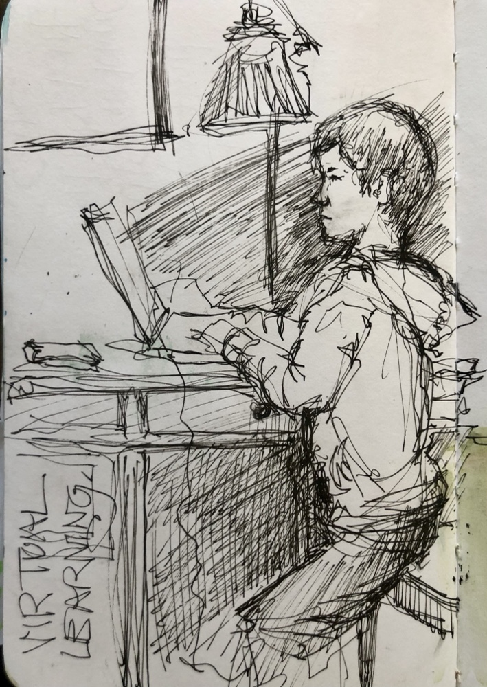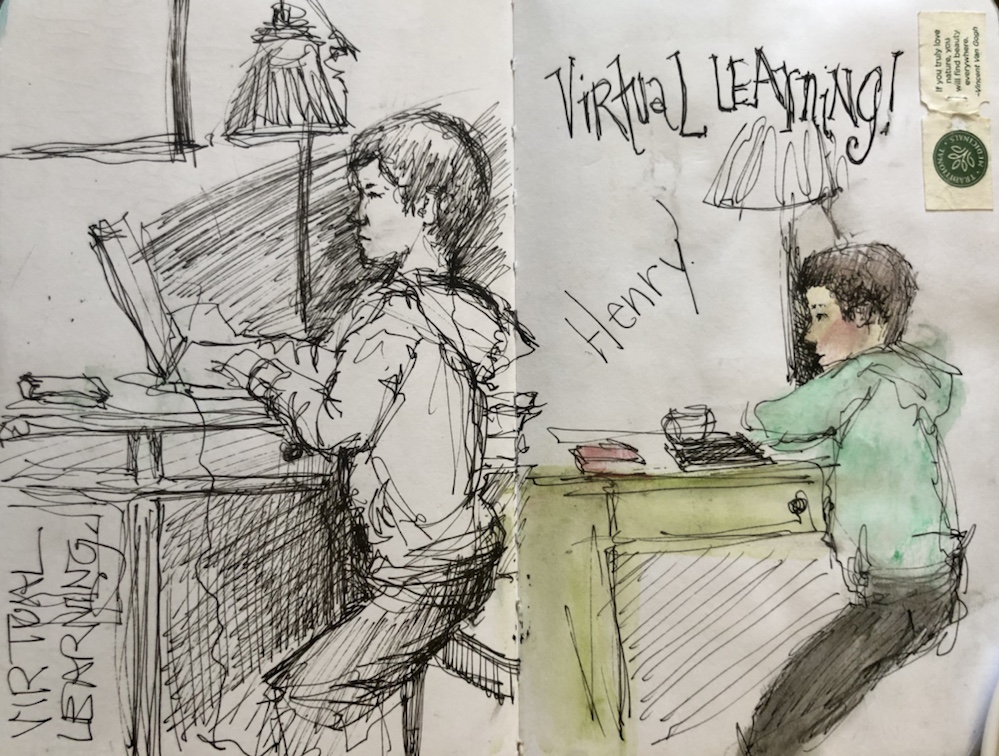 I think the only time Henry holds still is when he’s doing class work. Virtual school now out for this week.
