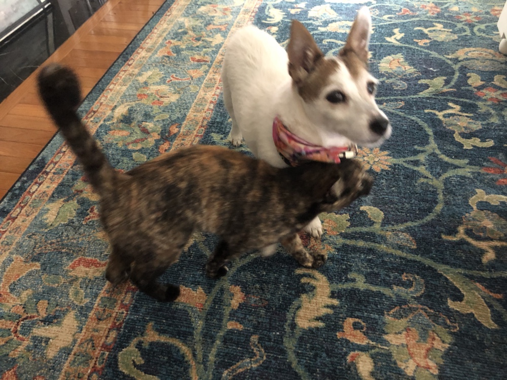 Evidently Zoe’s kitty missed her while we were in Atlanta. This cat will not come near me. I can only pet her when she’s eating. But Zoe. Much to Zoe’s chagrin she follows her around rubbing all over her. Doesn’t she know most Jack Russells like to eat cats!? Lucky for her Zoe tolerated them.