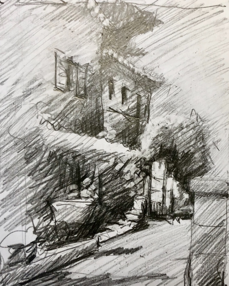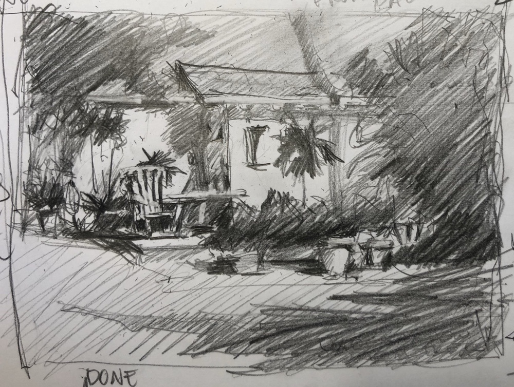 I meant to draw some people in this sketch but of course they hopped in their go cart and zipped off down the beach about the time I sat down to draw this scene. Oops.