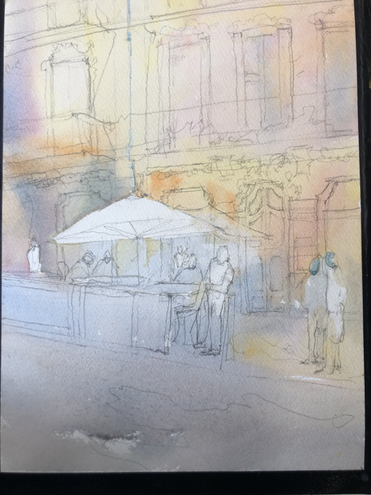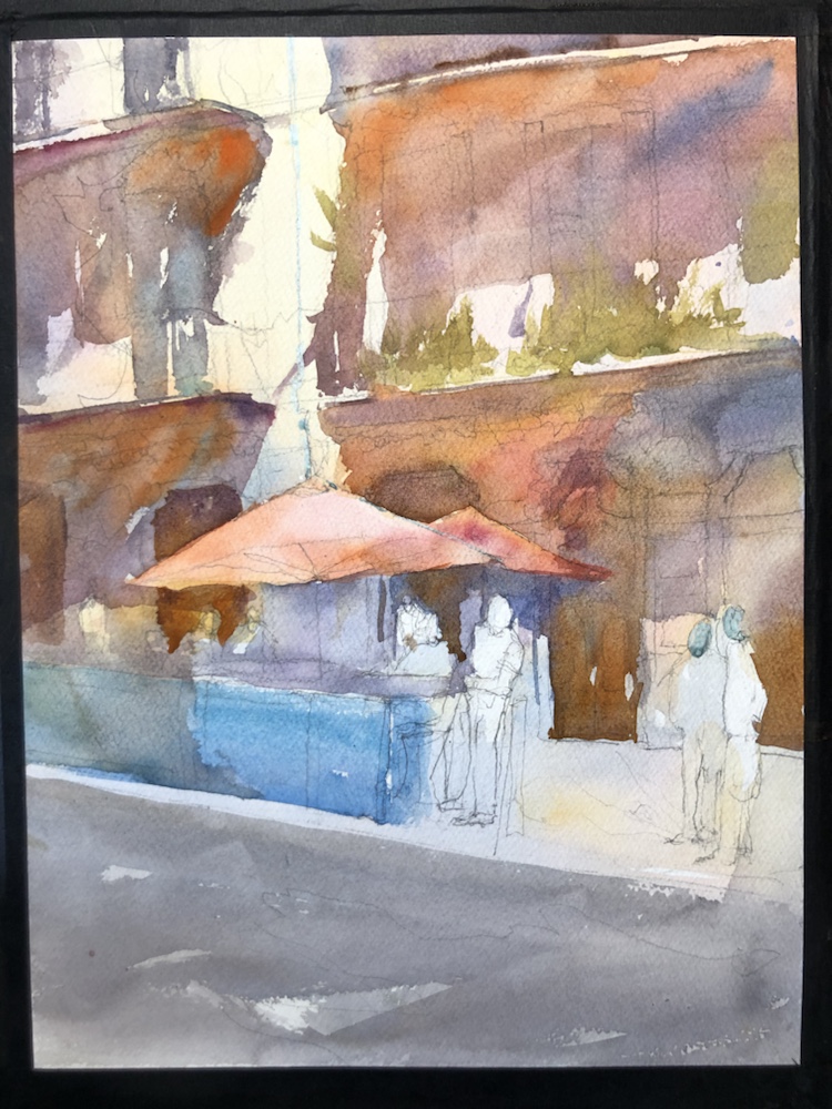 First wash. Cobalt cad yellow alizarin dioxzine cad orange yellow ochre