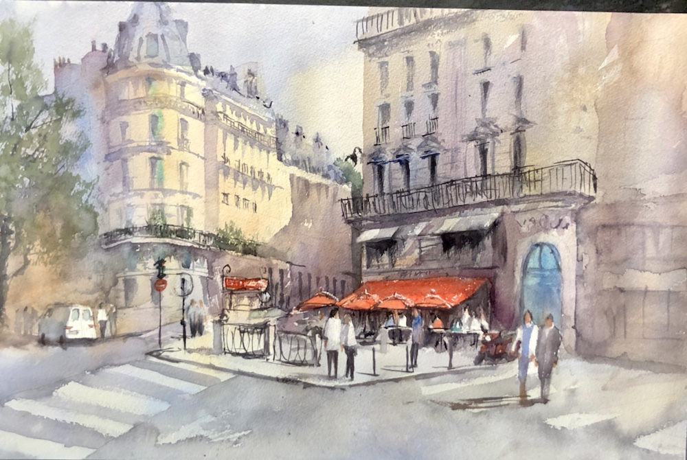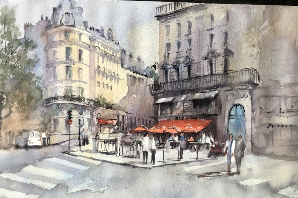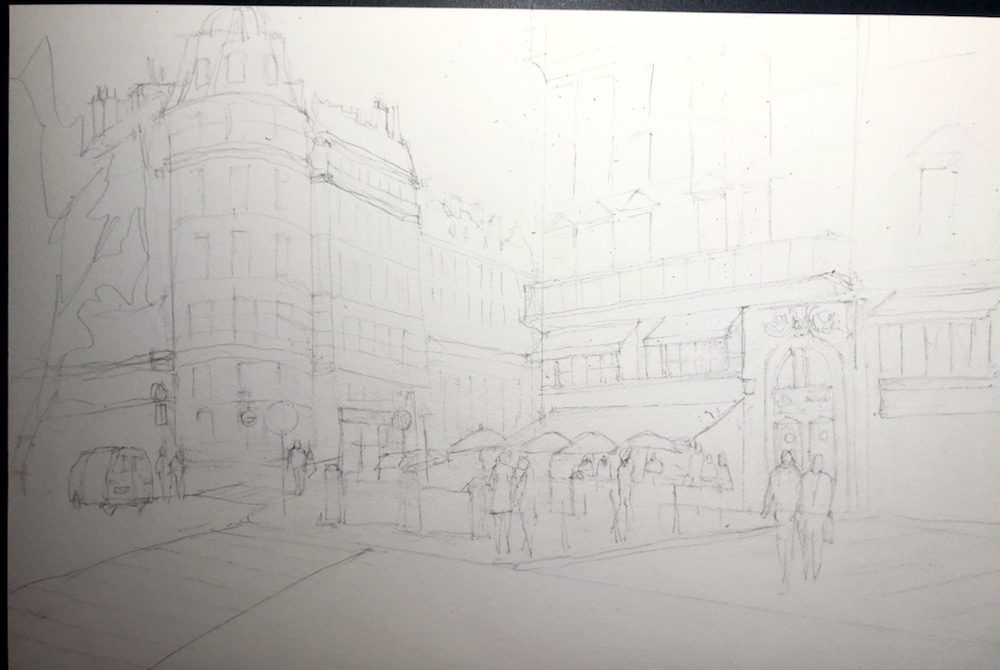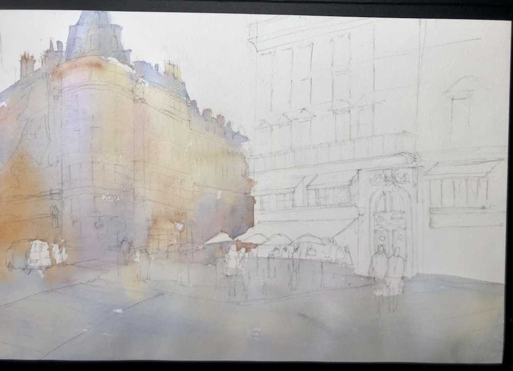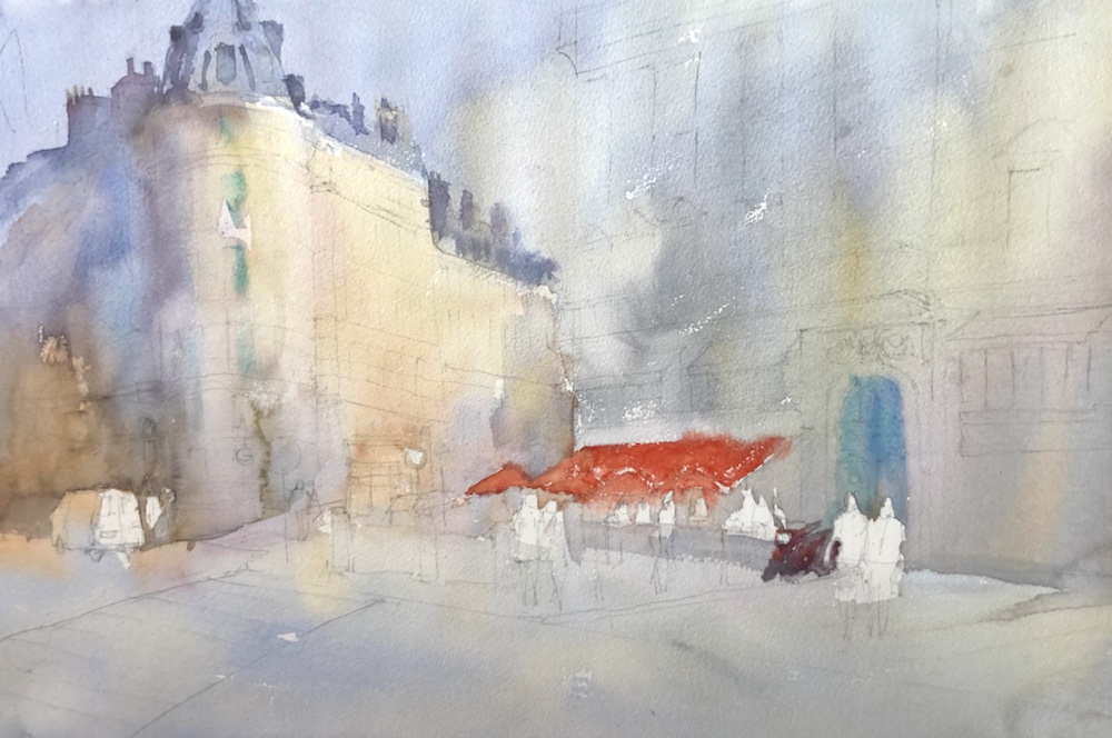 I added some more darks. The shadows on the top right of the building- the third story?! Under the roof line and the left side of it. I also added some darks to all the windows and the thing that looks like a garage door.