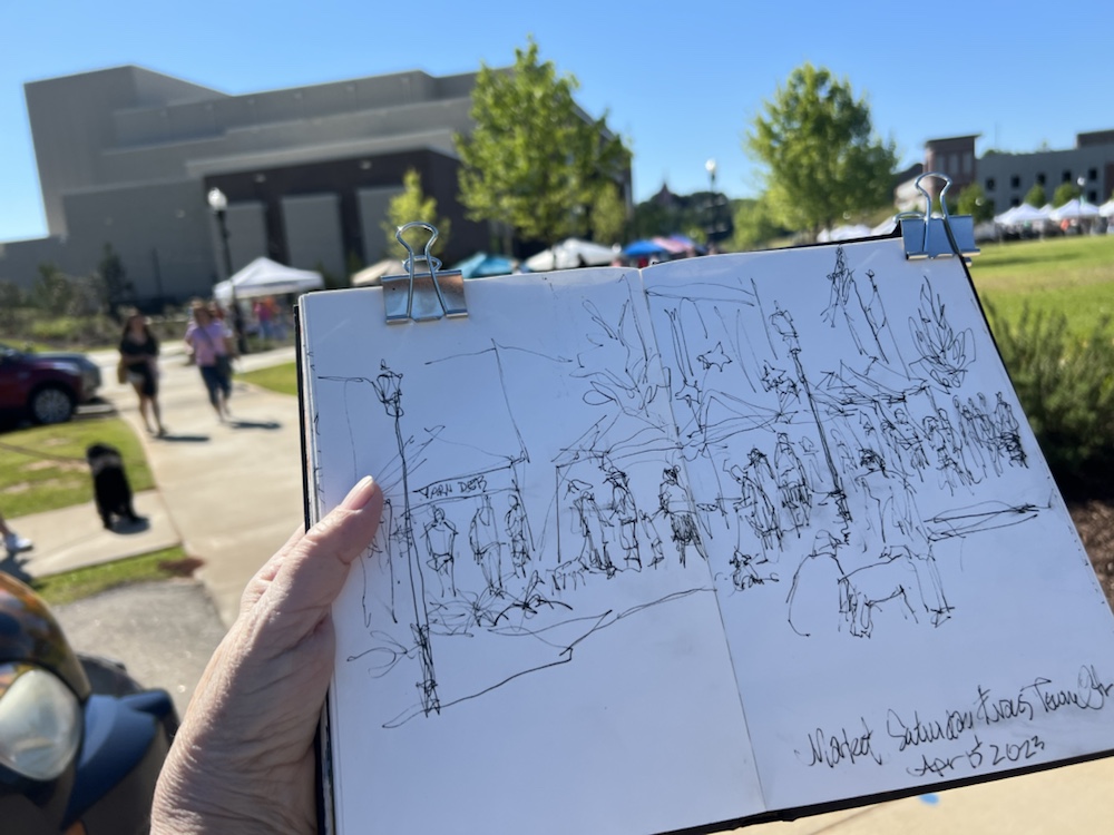 I was hoping to sketch when we got to Aiken and I schlepped the big sketchbook and the neocolor now found in my purse along with an assortment of pens and pencils. Well I am now ready for the next happening l, right?