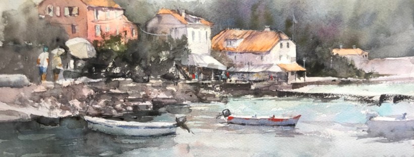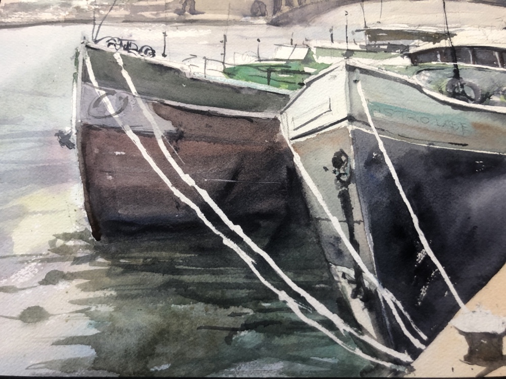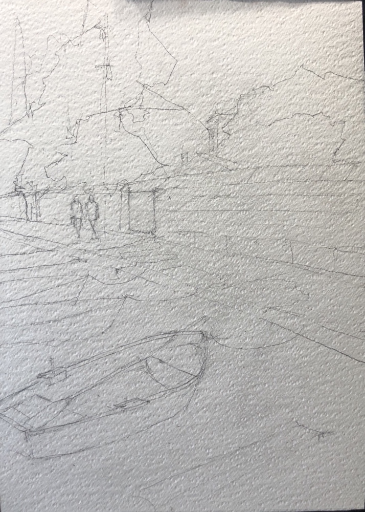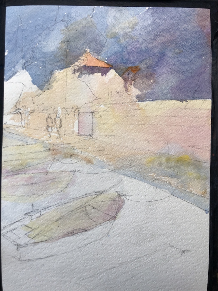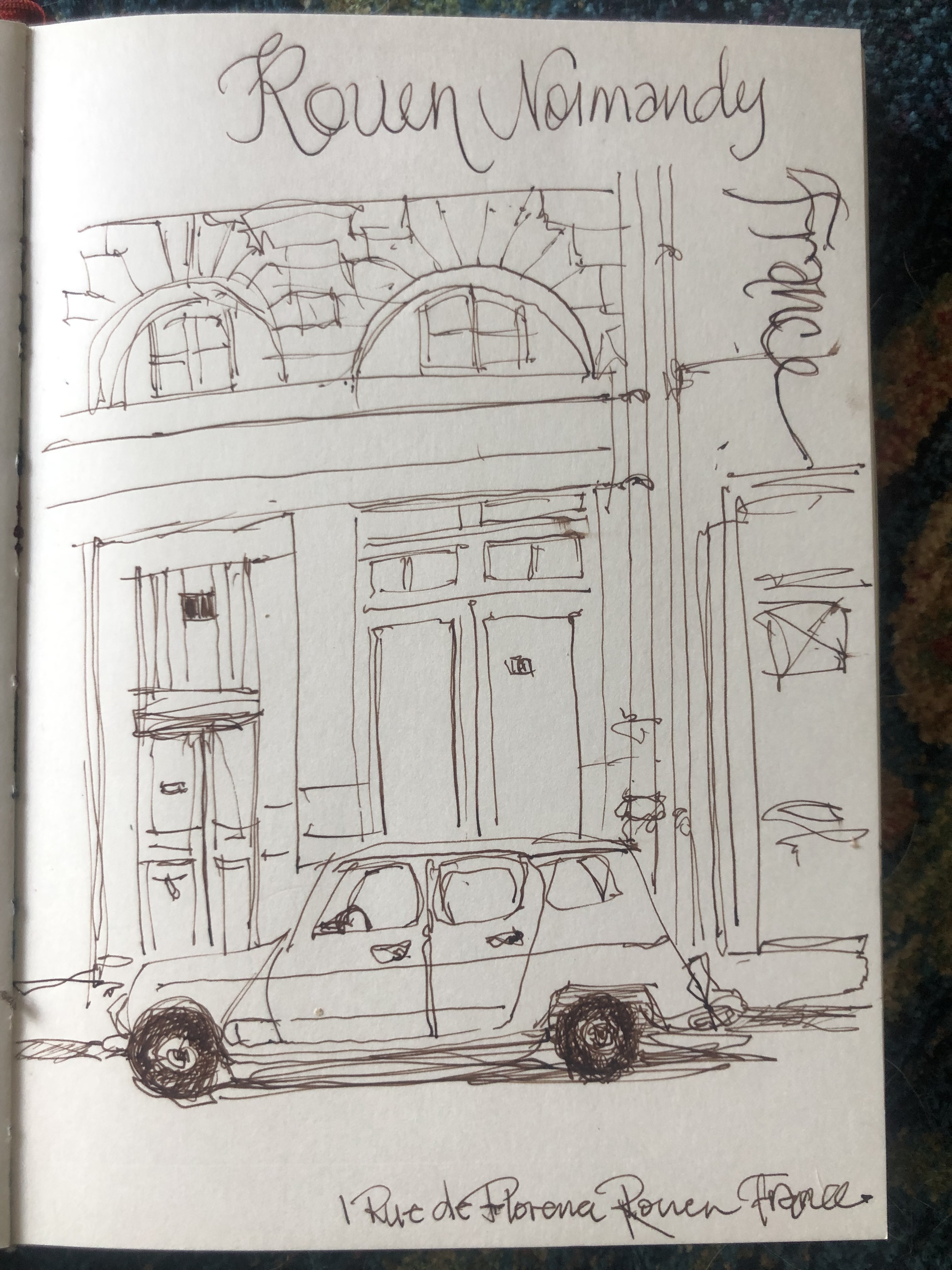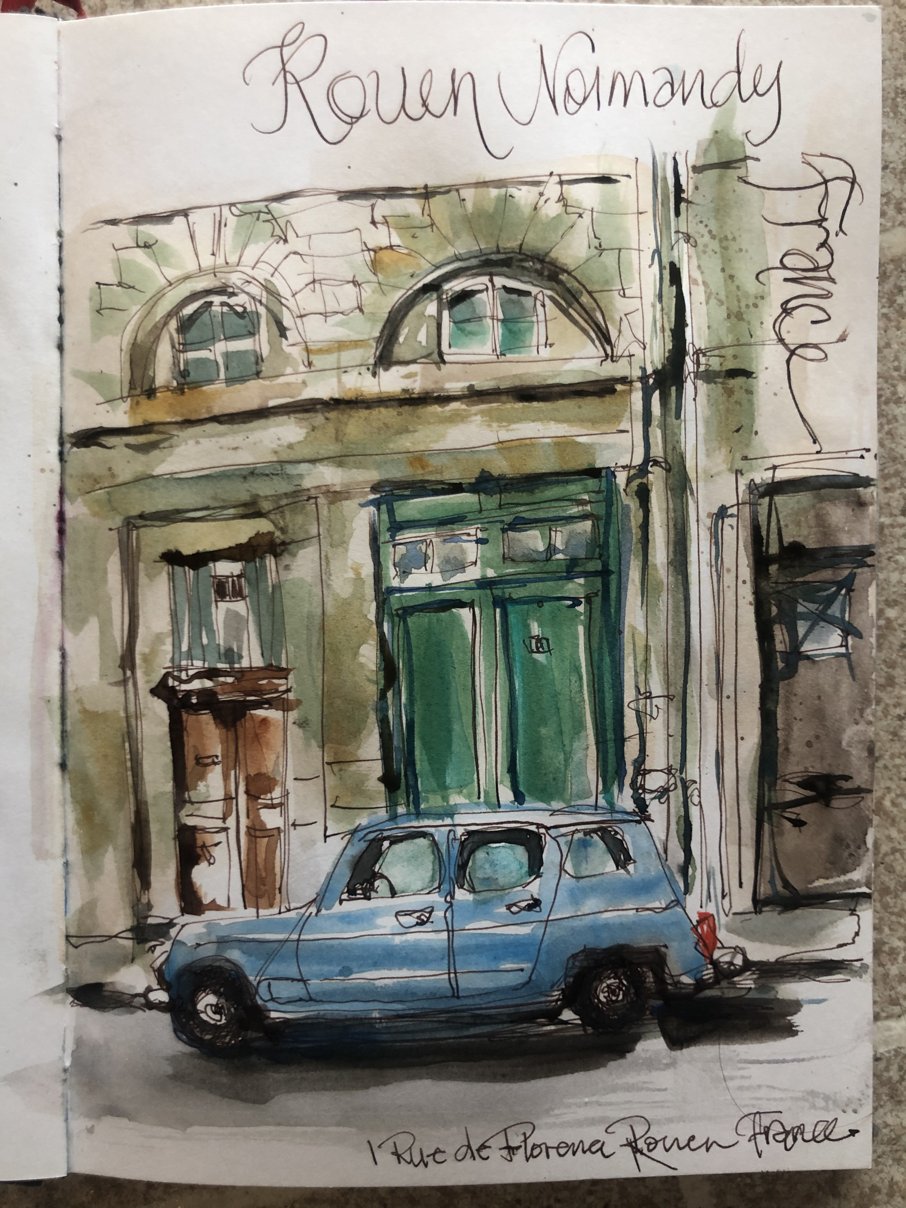 Margaret xoxoxo whose going to listen to old WW 2 movies on TCM while she paints. #usk #urbansketcher #traveljournal #watercolor #aquarelle #ink #strathmore #viking #strathmore500 #arrowmanches #normandy #normandie #normandietourisme #vikingcruises #PegasusBridge #bayeux #Ranville #beny-sur-mer #Rouen #omahabeach #junobeach #dday #alliedinvasion