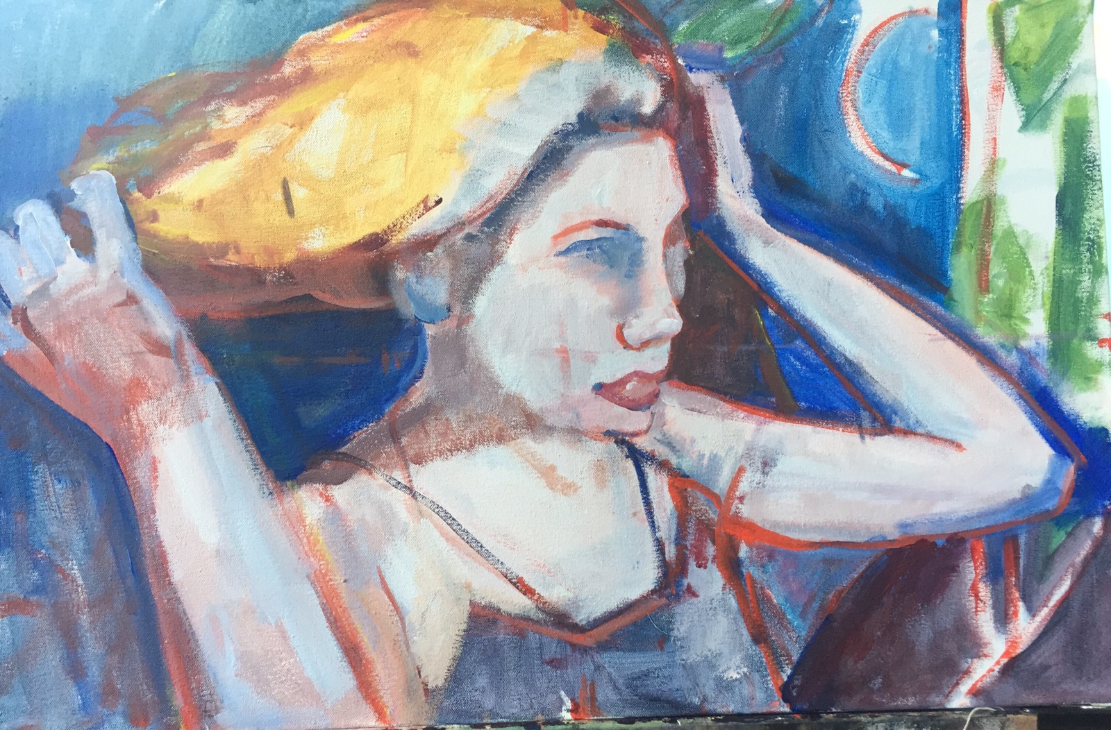 So what more is there to do…her feet could use some work. The background needs to be darkened…probably ultramarine to make her pop. Today I was into having fun with the paint…trying to be accurate but if I wasnt I didnt care…