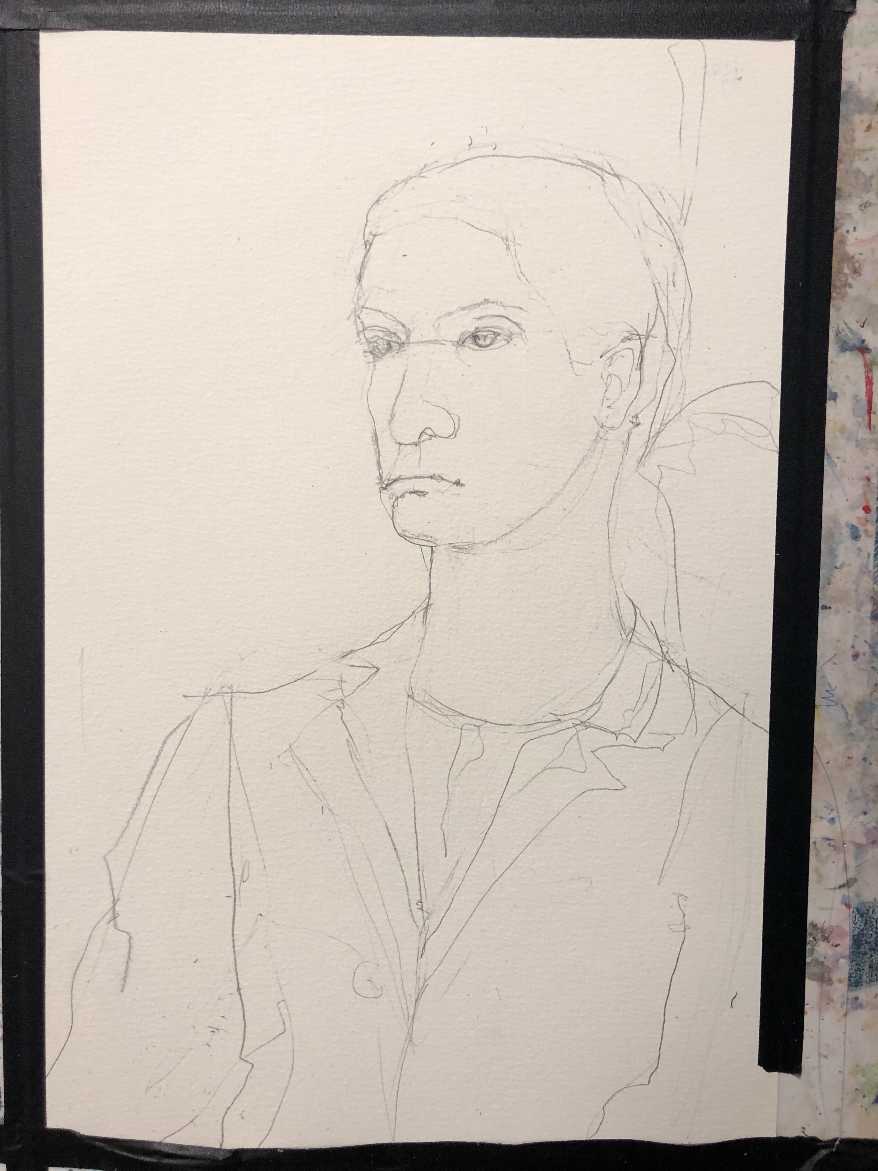 I tried drawing him like the second photo but was not going well at all. So I finally flipped he paper over and drew just his head and shoulders. Still a pain. Long nose huge eyes short forehead. And foreshortening of Head. Eeekkkk.
