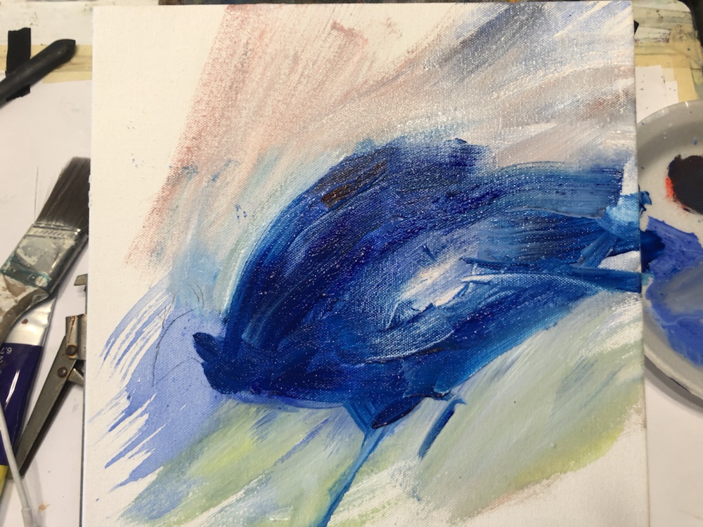 Cobalt and alizarin I think. Oh and cerulean. This was just using a regular brush making lines rolling it. Who knew you could roll a paint brush to make marks?!